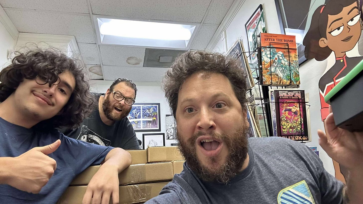 After Victory Folks, I got the idea to reprint my vast inventory of 1980s material, beginning with Megaton Man, in approximately 120-page paperbacks comprised of a few issues at a time. I didn’t get very far along with scanning the more than five hundred original art pages and a score or two of sharp photocopies and films in the summer of 2023 before Gary Groth, once again, stepped in and offered to publish The Complete Megaton Man Universe, Volume I: The 1980s (Fantagraphics Underground, 2025).