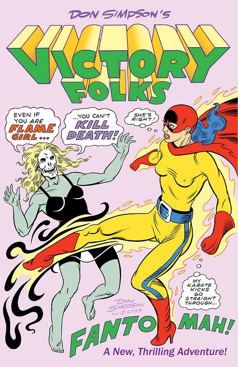 Last but not least, I pulled together The Lost Art of Don Simpson (Fiasco Books, forthcoming)—currently being printed overseas. Culled from hard-drives and hardcopy archives, the tome features a mash-up of my creator-owned IP (Megaton Man, Bizarre Heroes, and Border Worlds) and various commercial freelance jobs, with commissions and other rarities. It marks my “hard” return to self-publishing, if you will—and if you missed the crowdfunder, you should be able to score a copy at a personal appearance during the upcoming 2026 show season.