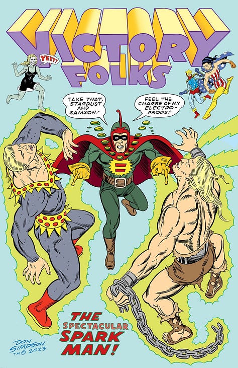 I should also mention that while anyone can use the various public domain characters who comprise the team, the concept Victory Folks is my intellectual property. So, there!